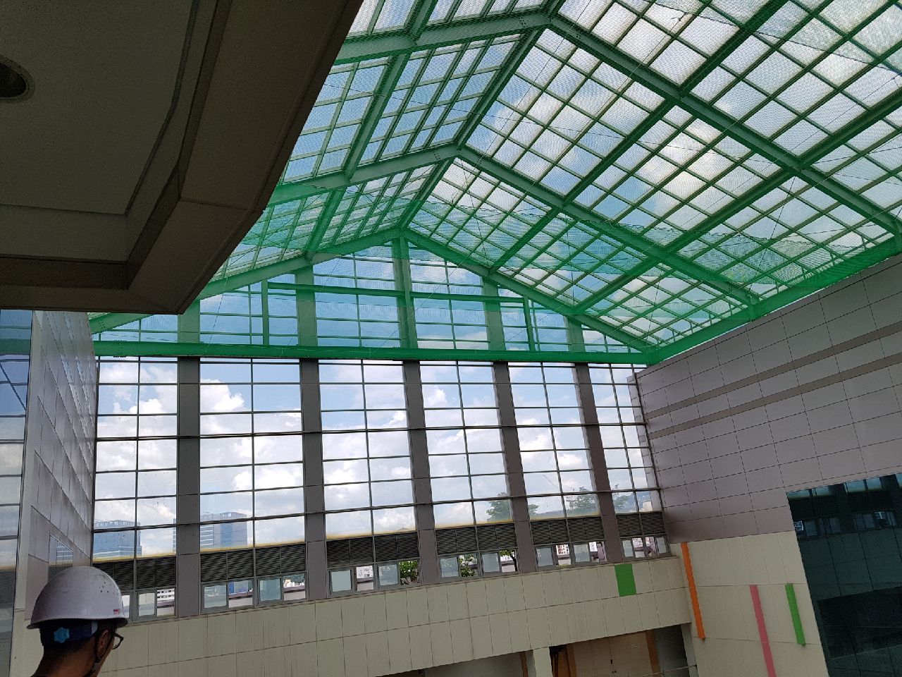 지붕유리 교체 공사를 위한 안전망설치