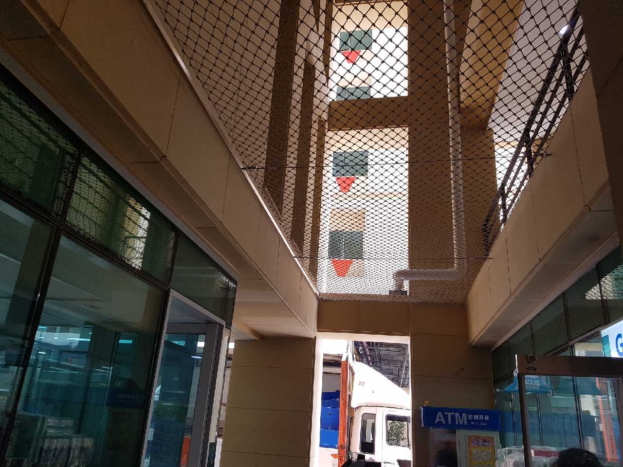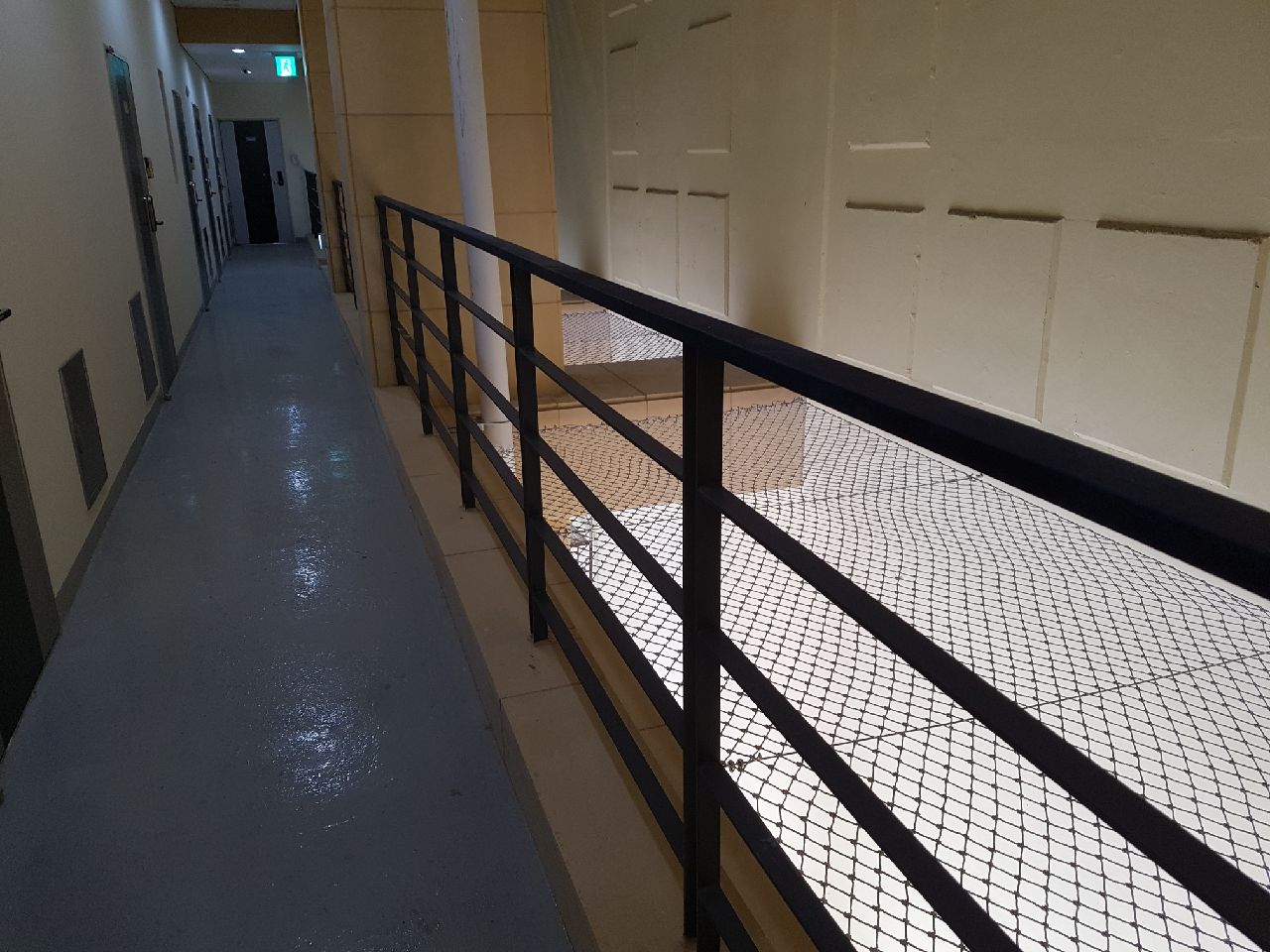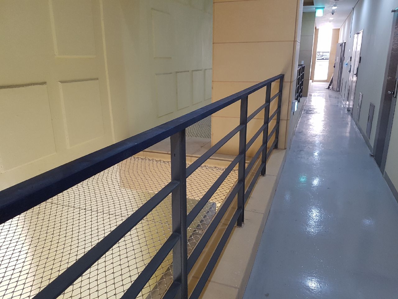 부산의 모 신축 오피스텔 내부 안전망설치 인증된 안전망제품 열처리및 코팅처리가되어 튼튼하며 열과 햇빛 눈과비에 어떠한 지장도 받지안습니다. 정품 6센치코 안전망 연락주세요