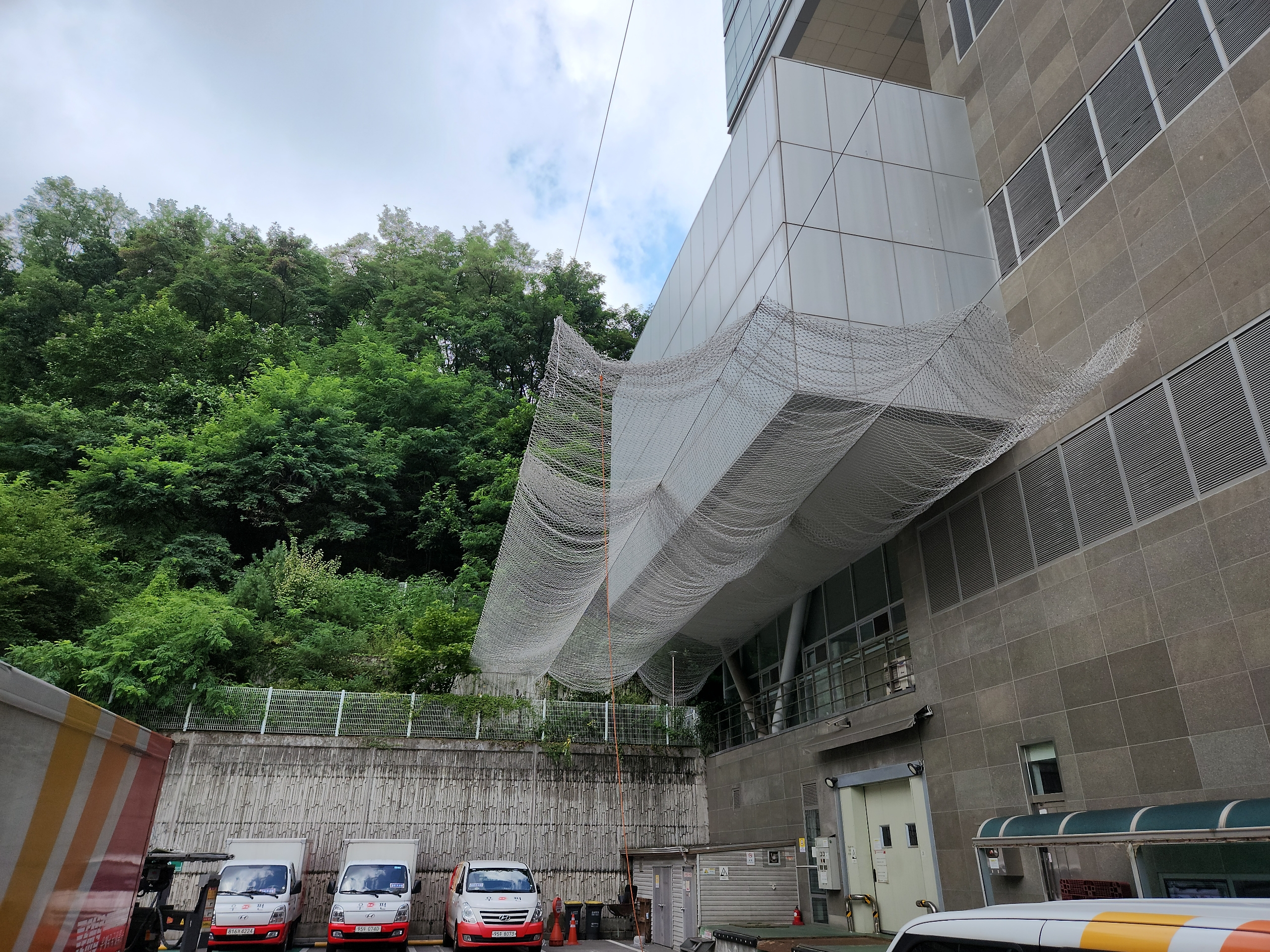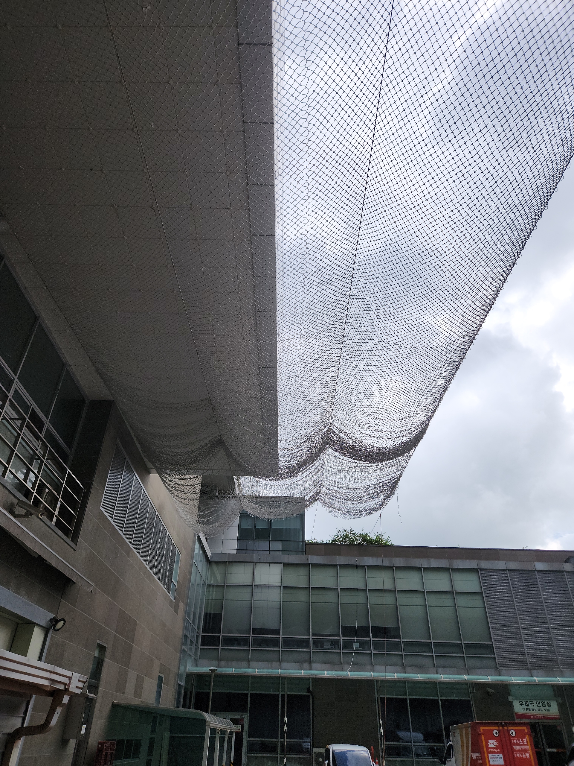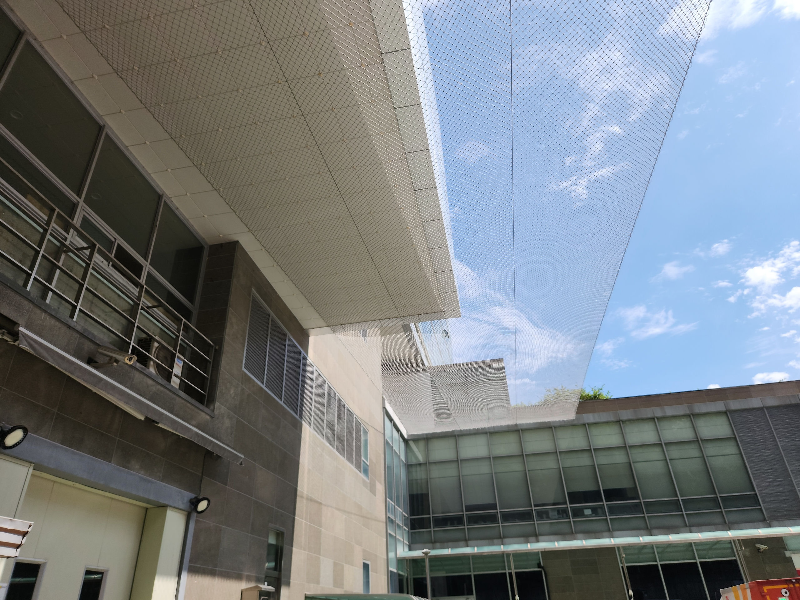 pe 7센치코 안전망사용 열처리코팅되어 반영구적으로 사용가능 야외에 가장적합안 안전망용도 언제든 연락주세요 위에 텍스가떨져 사람이 다칠수있는 상황이라 튼튼하고 반영구적으로 설치할수있는 스텐와이어와 pe마을 사용하여 작업완료 [이 게시물은 관리자님에 의해 2025-09-15 15:28:28 낙하물방지망에서 복사 됨]